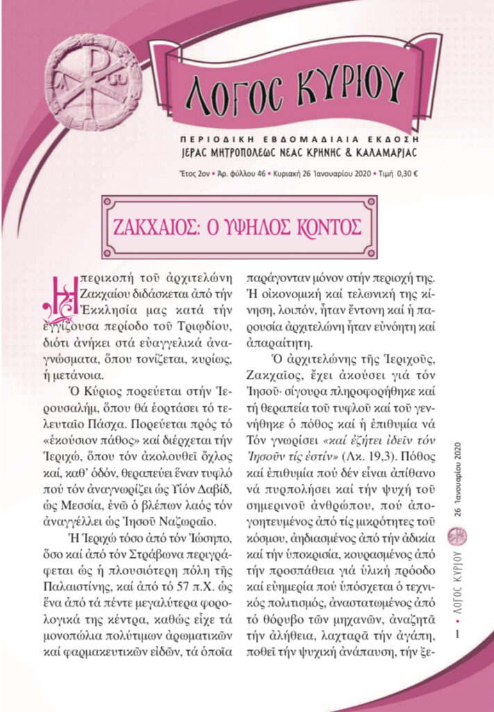 “Λόγος Κυρίου”-26/01/2020-Ζακχαίος: ο υψηλός κοντός