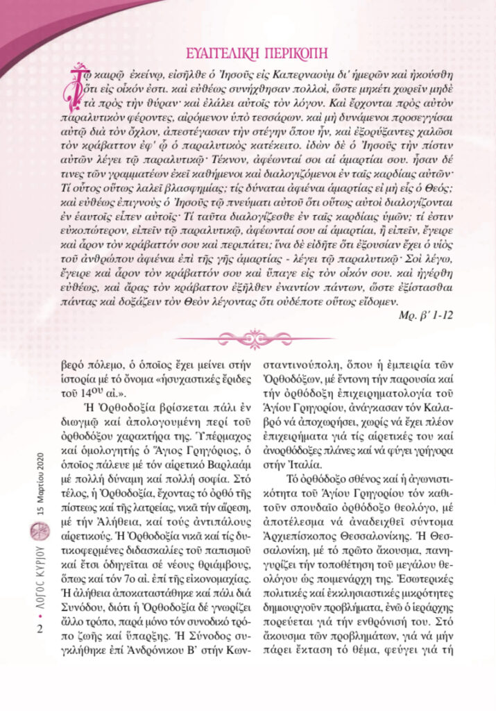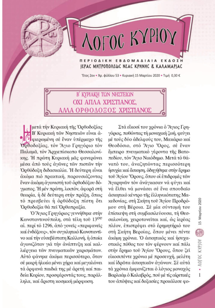 “Λόγος Κυρίου”-15/03/2020-Όχι απλά χριστιανός, αλλά ορθόδοξος χριστιανός