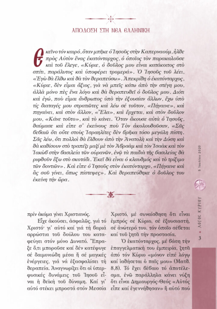 “Λόγος Κυρίου”-05/07/2020-Και η ισότητα ένδειξη αγάπης