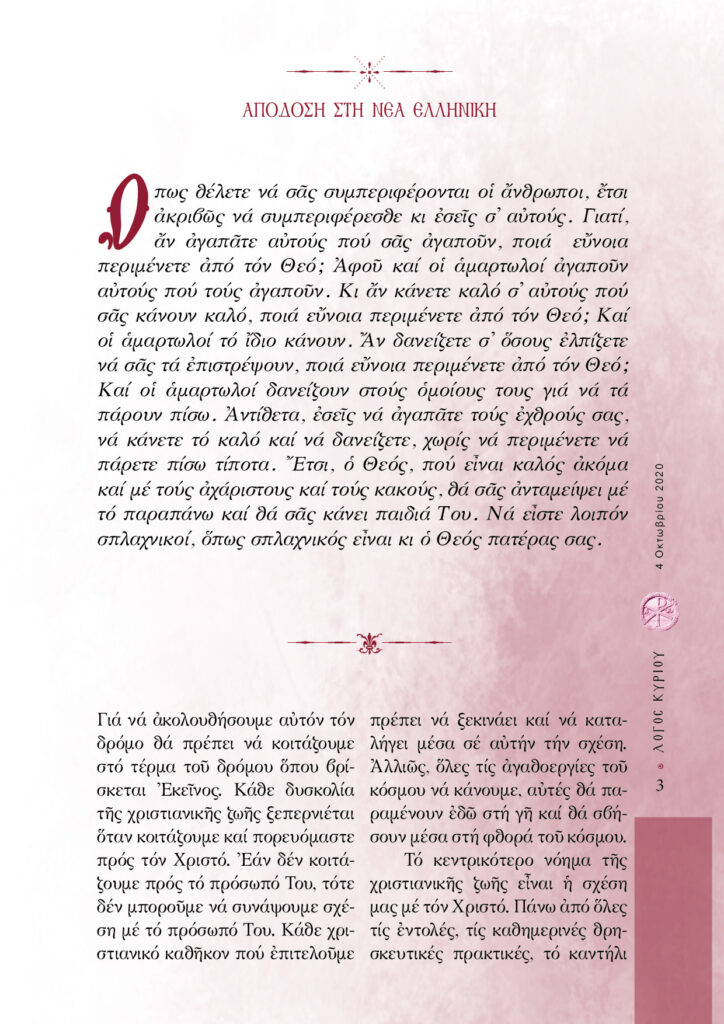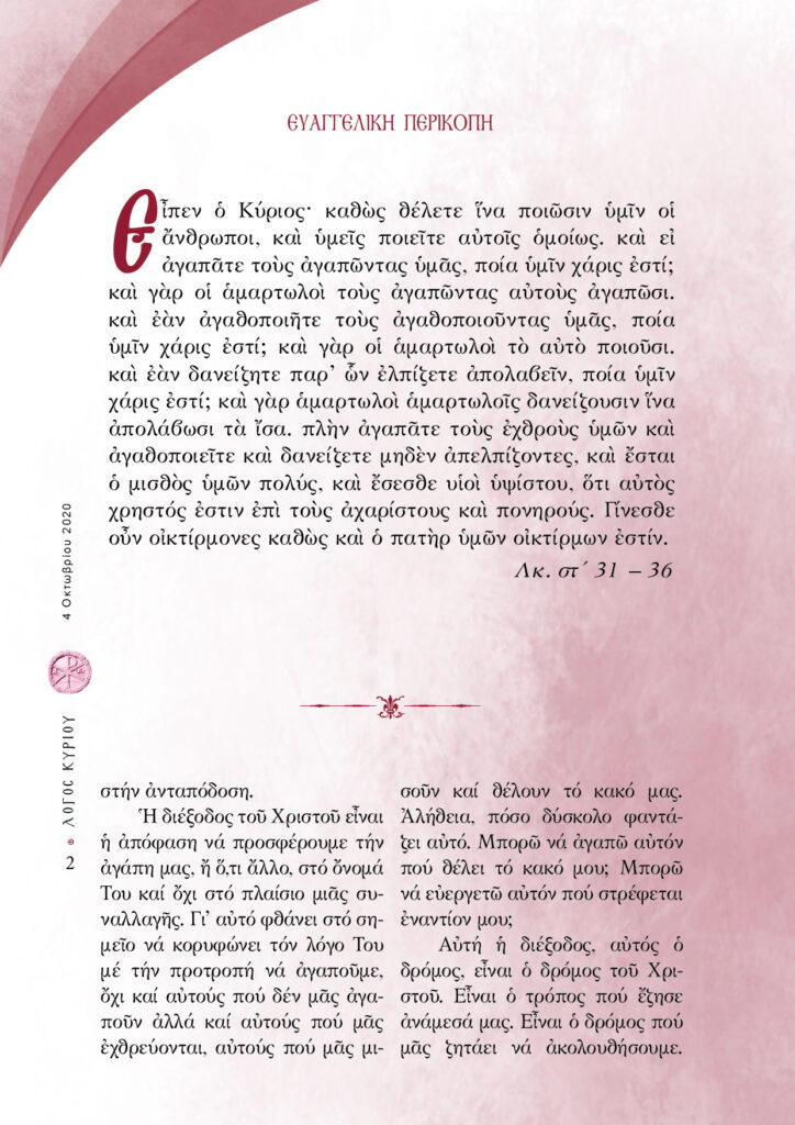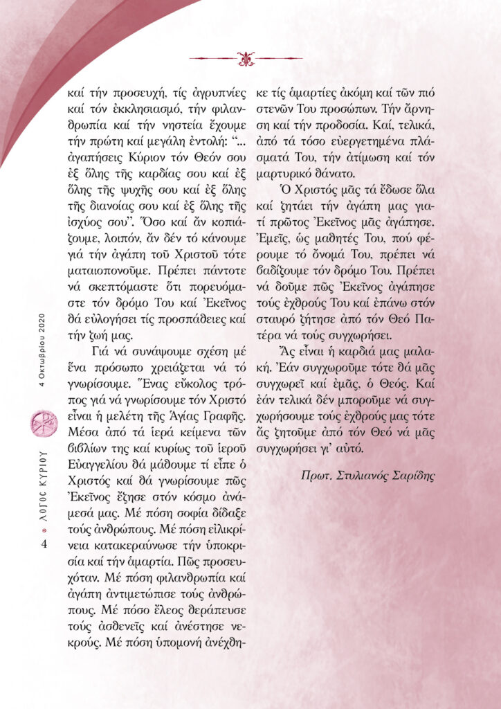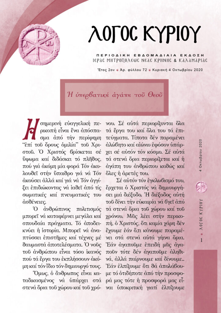 “Λόγος Κυρίου”-04/10/2020-Η υπερβατική αγάπη του Θεού