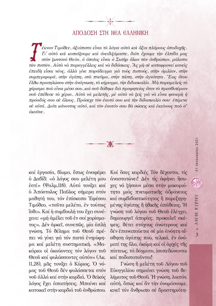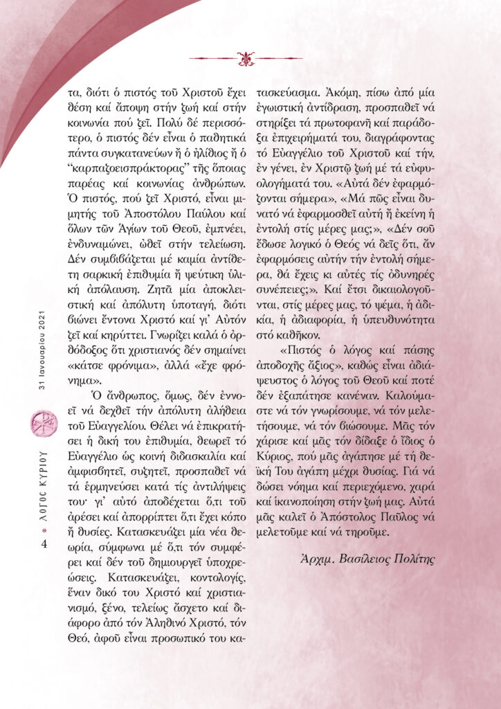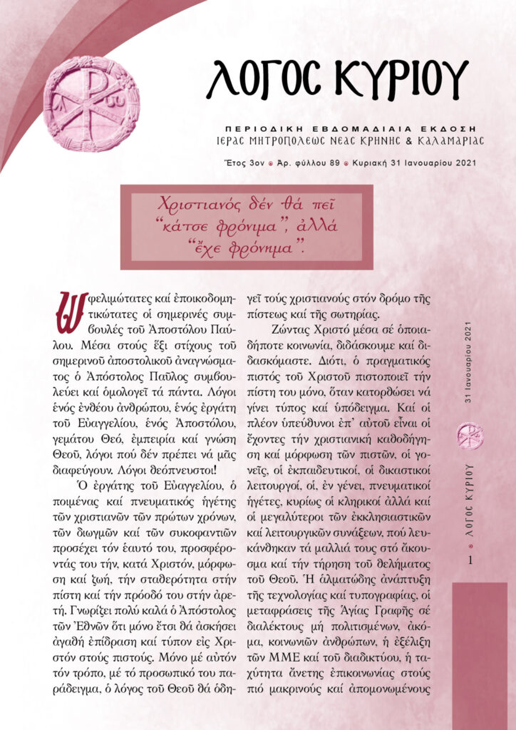 “Λόγος Κυρίου”-31/01/2021-Χριστιανός δεν θα πει «κάτσε φρόνιμα», αλλά «έχε φρόνημα»