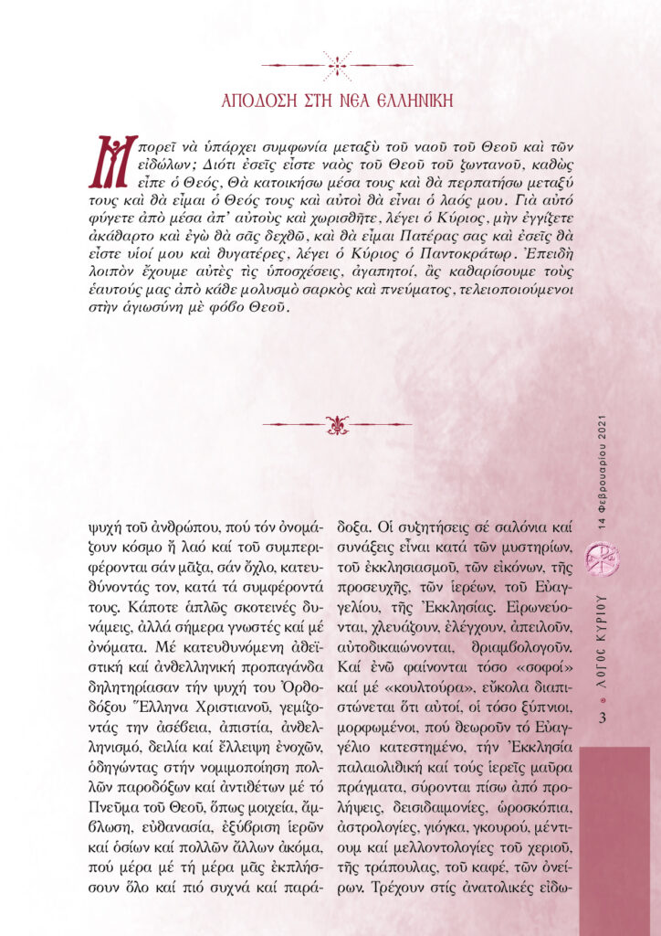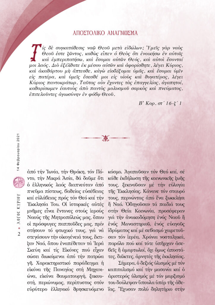 “Λόγος Κυρίου”-14/02/2021-Χριστιανός – ασυμβίβαστος