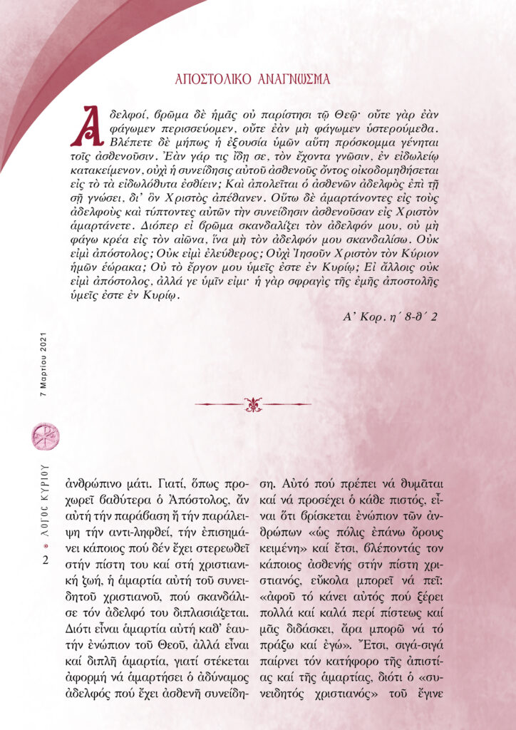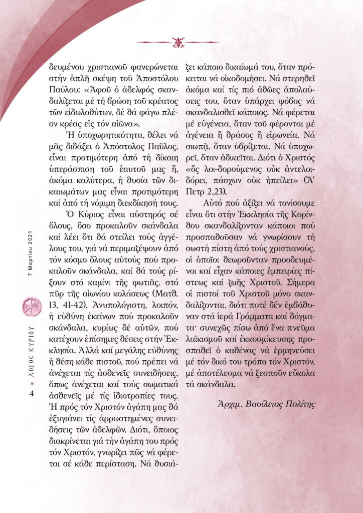 “Λόγος Κυρίου”-07/03/2021-Μην αμαρτάνεις για να μη σκανδαλίζεις