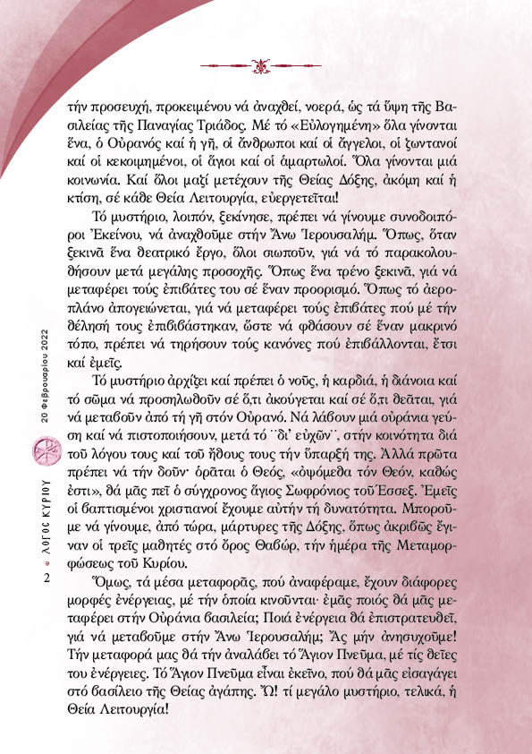 “Λόγος Κυρίου”-20/02/2022-«Εὐλογηµένη ἡ Βασιλεία τοῦ Πατρός καί τοῦ Υἱοῦ καί τοῦ Ἁγίου Πνεύµατος, νῦν καί ἀεί καί εἰς τούς αἰῶνας τῶν αἰώνων». Μέρος Α’