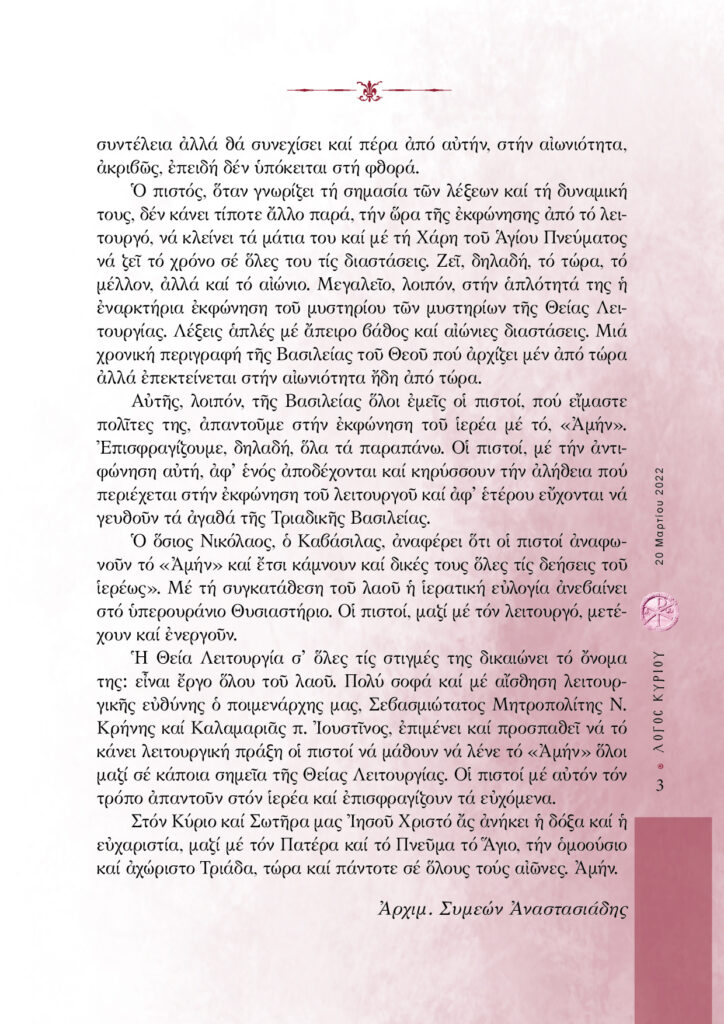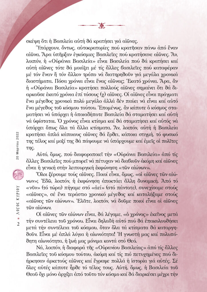 “Λόγος Κυρίου”-20/03/2022-«Εὐλογηµένη ἡ Βασιλεία τοῦ Πατρός καί τοῦ Υἱοῦ καί τοῦ Ἁγίου Πνεύµατος, νῦν καί ἀεί καί εἰς τούς αἰῶνας τῶν αἰώνων». Μέρος Ε’