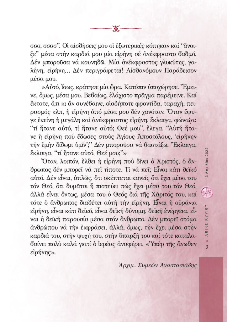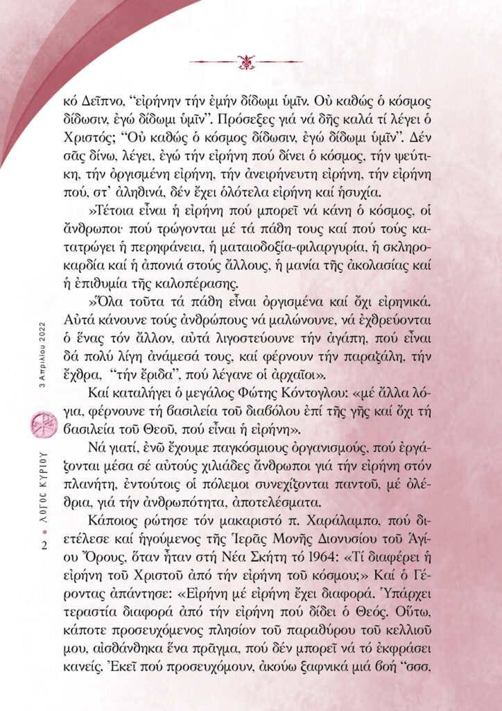 “Λόγος Κυρίου”-03/04/2022-«Ὑπέρ τῆς ἄνωθεν εἰρήνης καί τῆς σωτηρίας τῶν ψυχῶν ἡµῶν τοῦ Κυρίου δεηθῶµεν». Α’ µέρος