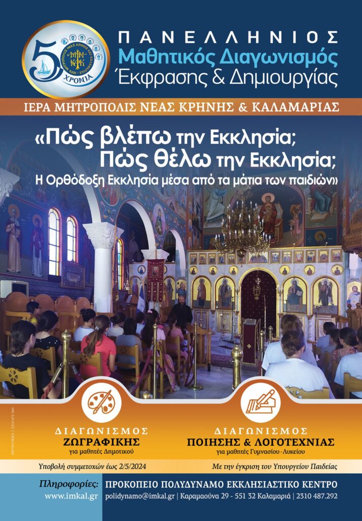 Μαθητικός διαγωνισμός έκφρασης και δημιουργίας: «Πώς βλέπω την Εκκλησία; Πώς θέλω την Εκκλησία; Η ορθόδοξη Εκκλησία μέσα από τα μάτια των παιδιών.»