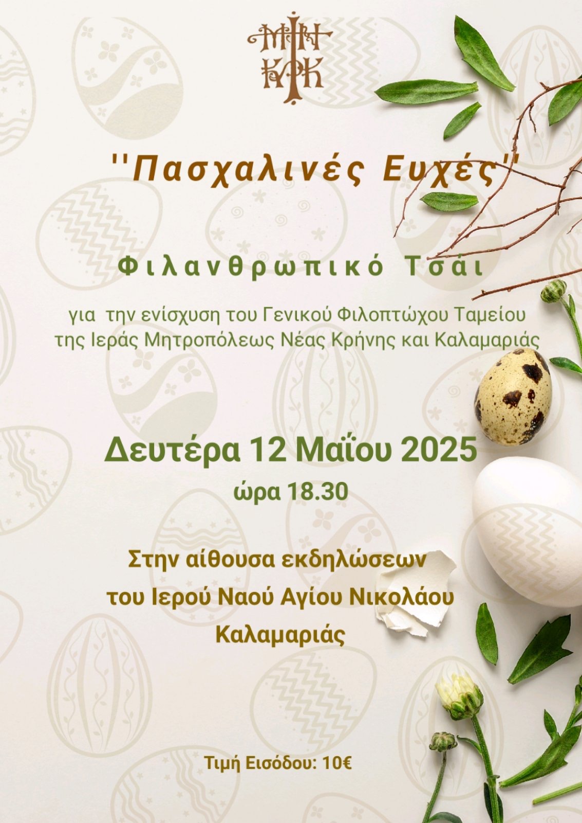 Φιλανθρωπικό τσάι για την ενίσχυση του Γενικού Φιλοπτώχου Ταμείου της Ιεράς Μητροπόλεώς μας Διαβάστε περισσότερα 09/05/2025