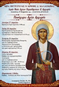 7:30 μ.μ. στην Πλατεία Ύδρας στην Νέα Κρήνη Θα ακολουθήσει Ιερά Αγρυπνία