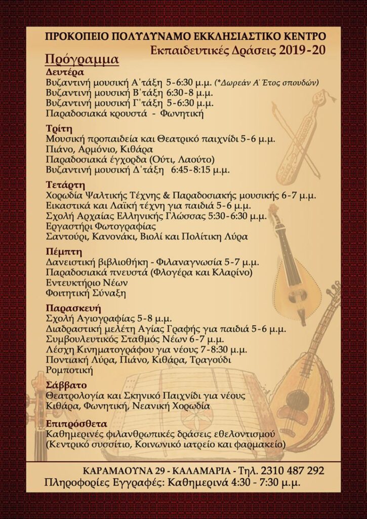 Το Προκόπειο Πολυδύναμο Εκκλησιαστικό Κέντρο με τις ευλογίες του Σεβασμιωτάτου Ποιμενάρχου μας κ. Ιουστίνου, προσφέρει μια σειρά αξιόλογες εκπαιδευτικές και πολιτιστικές δράσεις για μικρούς και μεγάλους!