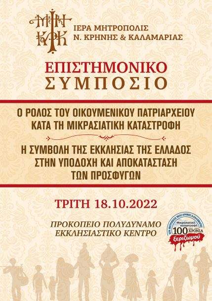 Επιπλέον, το 2022 κατά το οποίο συμπληρώθηκαν εκατό χρόνια από τη Μικρασιατική Καταστροφή και τη συνεπακόλουθη, λίγο αργότερα, Ανταλλαγή των Πληθυσμών διοργανώθηκε επιστημονικό συνέδριο με τον τίτλο: Ο ρόλος του Οικουμενικού Πατριαρχείου κατά τη Μικρασιατική Καταστροφή. Η συμβολή της Εκκλησίας της Ελλάδος στην υποδοχή και αποκατάσταση των προσφύγων.